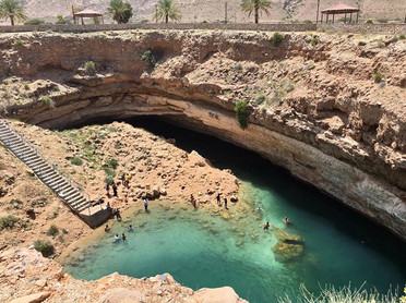 My favorite is Wadi Al Arbeieen with "The Secret Waterfall". Its not populated with tourist, much more difficult to get to and earning the view is worth it. Located 90 kilometers from Muscat with a 7 kilometer drive off road to a small village with beautiful wadis and clear water but to get to the secret waterfall you need to lace up your hiking boots, grab some water protective bags and set off on a 2.5 hour hike one way to the waterfall and back again. You will negotiate thru palm groves, scramble over large boulders, swim thru long stretches of clear turquoise water patterned against the desert colored rocks, and climb ropes until you reach the large flowing waterfall flowing over green vegetation reaching out from the cliff faces. Spend some quality time swimming and diving in the beautiful Wadi pool in front of the waterfall.