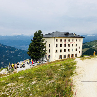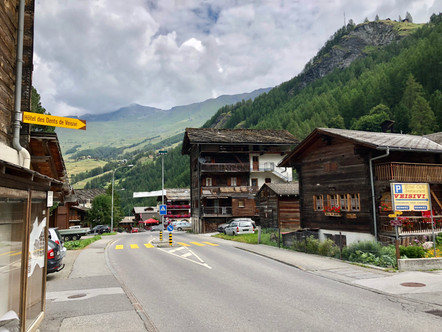 Crossing the final pass of the trip, the legendary Augstbordpass, we experienced sweeping views of Dom, the highest peak entirely within Switzerland, and stopped at the Weisshorn hotel for fresh blueberry pie on the terrace. We made the descent into Jungen / St Niklaus an what was described as an exciting gondola ride taking you to the valley floor where we finished the route and took the train to Zermatt. This gondola was small, steep, and upon arrival I honestly didn't think it was operable, I was mistaken. It was slow, swung in the wind and would stop abruptly during the descent (40 minutes). Hiking down the mountain from this location was beyond a steep drop and roughly a four hour decent, my knees after trekking over 120 miles said "ride the gondola or die here". I chose the ride.