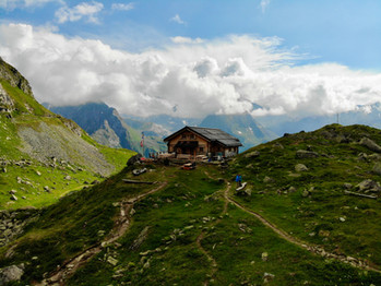 Today the terrain was rugged as we crossed two challenging passes, Louvie and Prafleuri, the highest pass on the Hiker's Haute Route. We dipped into a rocky glacial section with a runoff stream. We stayed at the lovely Cabane de Prafleuri.