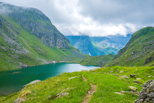 Today’s route ascended steeply above the Val de Bagnes along the Sentier des Chamois with commanding views extending to the Mont Blanc range. We finally arrived at the Cabane de Louvie on the shore of the beautiful Lac de Louvie with dramatic views of the Grand Combin.